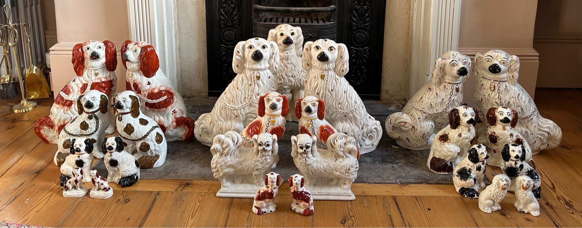 Staffordshire dog figures are matching pairs of pottery dogs that were very...