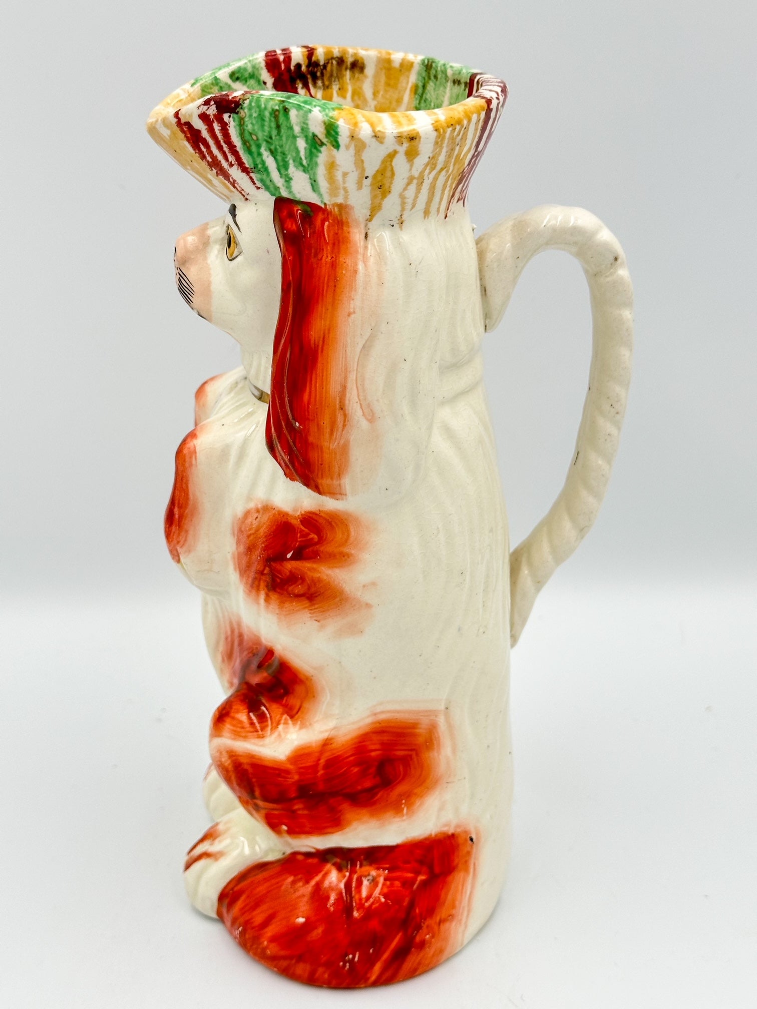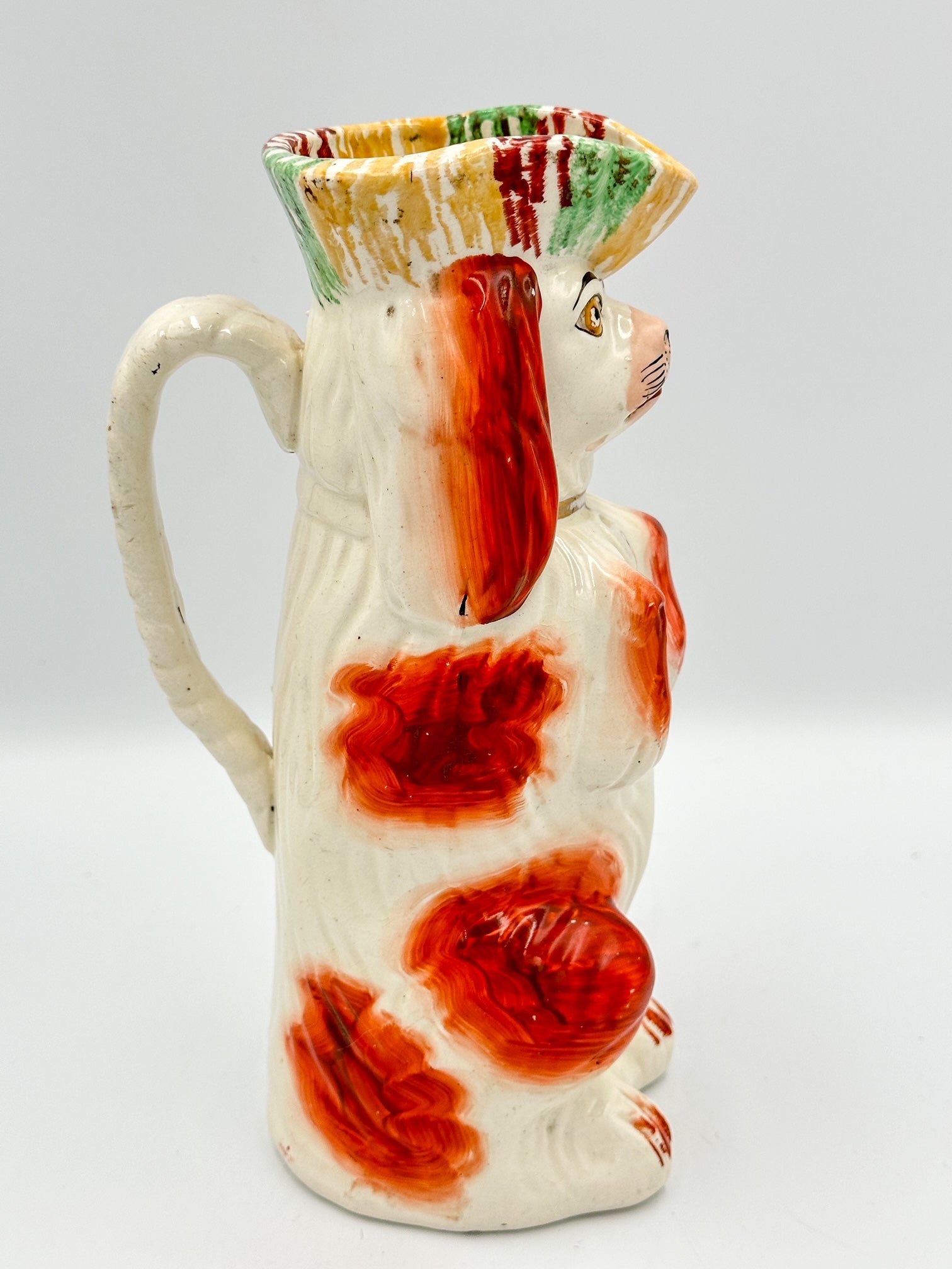 Begging Staffordshire Dog Pitcher w/ Striped Hat